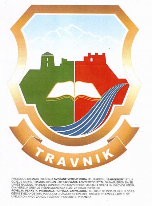 Na današnjoj ,38.redovnoj sjednici Općinskog vijeća odlukom vijećnika, nakon dugogodinšje procedure, donesena je Odluka o usvajanju grba i zastave. Iako radna sjednica Općinskog vijeća je protekla u skoro svečanoj atmosferi u kojoj je objavljeno i prezentovano izabrano rješenje u proceduri javnog poziva a vijećnici jednoglasnom odlukom potvrdili izbor Komisije. Ovom prilikom predstavljamo novi grb, zastavu i svečanu verziju grba općine Travnik, a naknadno ćemo objaviti tri prvonagradjena rješenja kao i podatke o autorima. Izvornu verziju grba možete preuzeti u meniju DOKUMENTI.