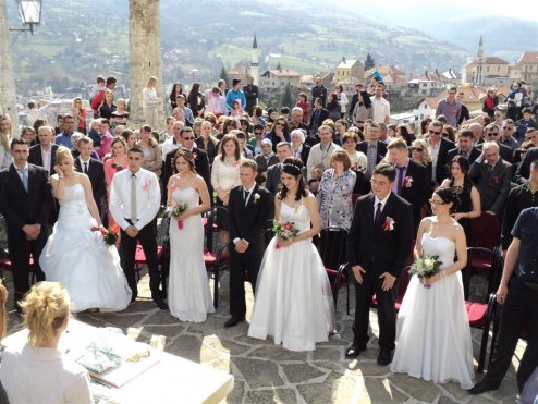 U prekrasnom ambijentu Starog grada i uz prisustvo velikog broja građana 10 mladih ljudi je svečanom ceromonijom zakoračilo u bračne vode. U organizaciji Općine Travnik a u okviru obilježavanja Dana općine 2014 zajedničkim vjenačnjem brak su sklopili: