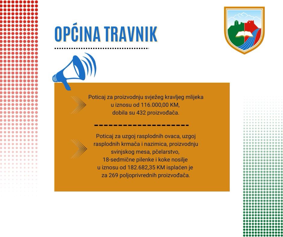 Obavještavamo korisnike poticaja koji su se prijavili na javni poziv za dodjelu poticaja za unapređenje poljoprivredne proizvodnje općine Travnik za 2023. godinu, da su: