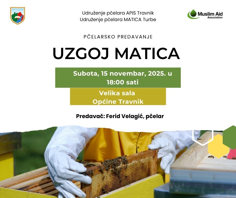 Općina Travnik i organizacija Muslim Aid pozivaju sve pčelare, kao i zainteresirane građane, da prisustvuju ovom stručnom i informativnom događaju.